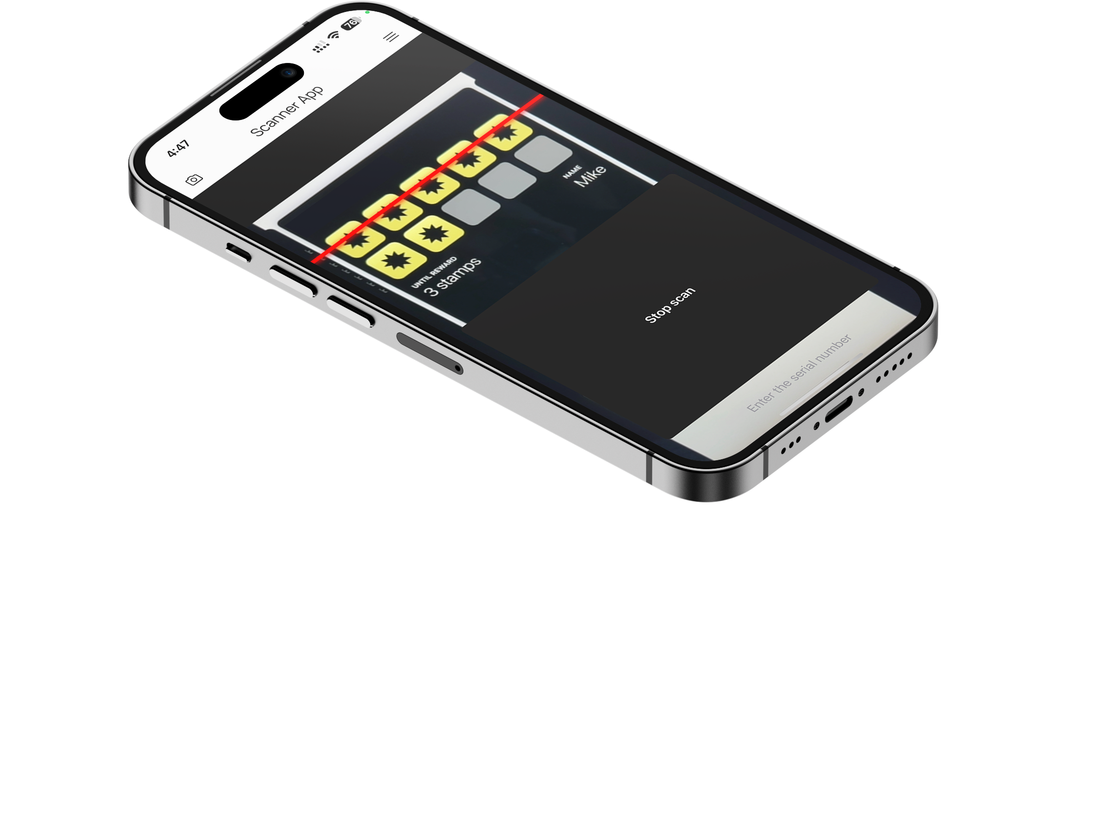 Depois de criar uma conta comercial, você receberá um link para instalar o aplicativo Scanner de cartão gratuito. Basta compartilhar o aplicativo para todos os vendedores do seu negócio e monitorar estatísticas compartilhadas